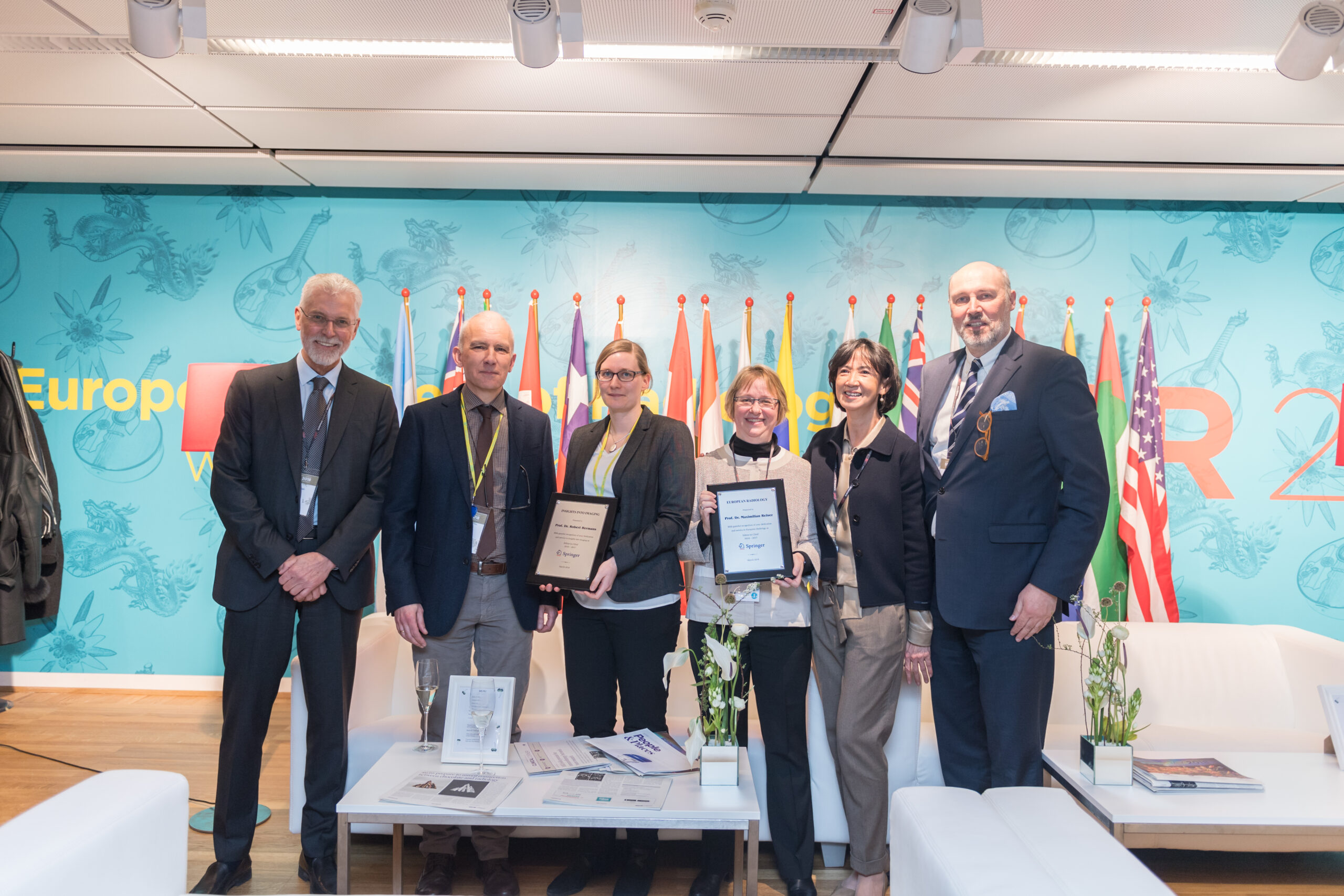 During a cocktail reception in familiar atmosphere, the society represented by Prof. Paul M. Parizel, Chair of the ESR Board of Directors, as well as representatives from the publisher Springer, found warm words about the outgoing Editor’s-in-Chief dedication, hard work, and achievements. Both awardees received traditional stylographs and a plaque.